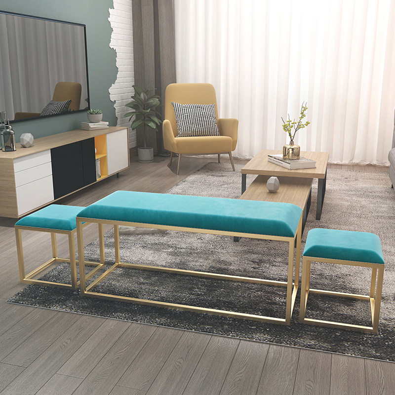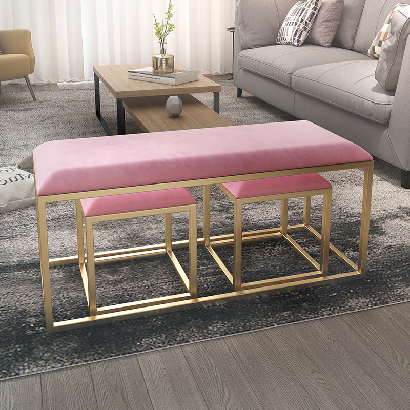 Brief Hyundai Ins sofa light extravagant fitting room Costume Shop Beauty Shop gold Iron Art Boutique Long version of the bench