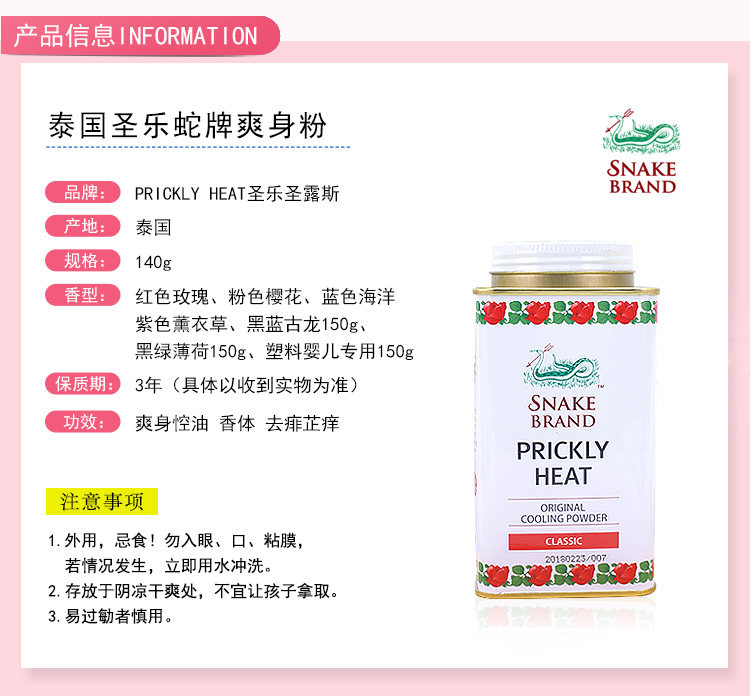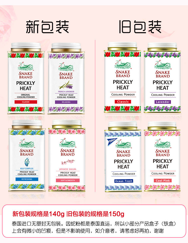 Thai snake powder Pink Powder powder Powder Raw Powder powder Original Imported Sacred Music Body Powder powder Smooth Sweat and Anti-mosquito Cool 140g