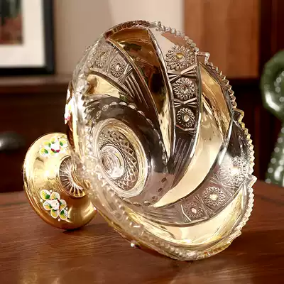 Gold-plated enamel fruit plate modern creative crystal glass luxury high foot large fruit basin living room coffee table ornaments for home