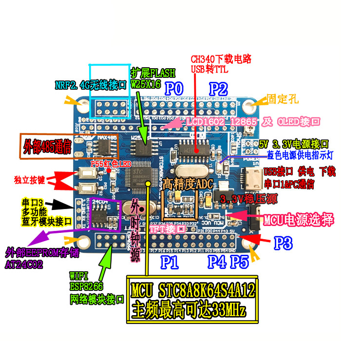 STC8A8K64S4A12 Development board 1T Single wafer 51 Experimental board STC15 Upgrade