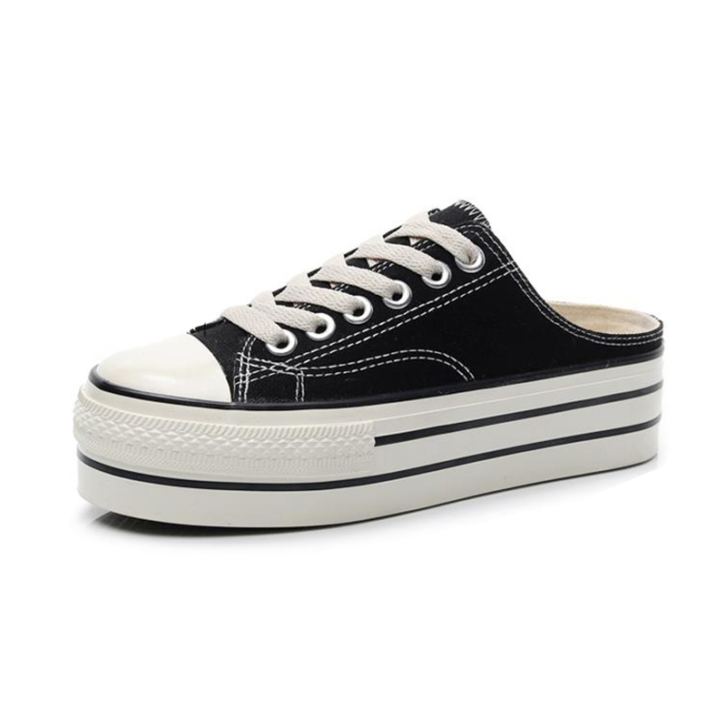 Hong Kong 2019 Summer New heel No heel heightening Sail Cloth Shoes Women Half Slippers Thick Bottom Casual One foot Lazy Shoes