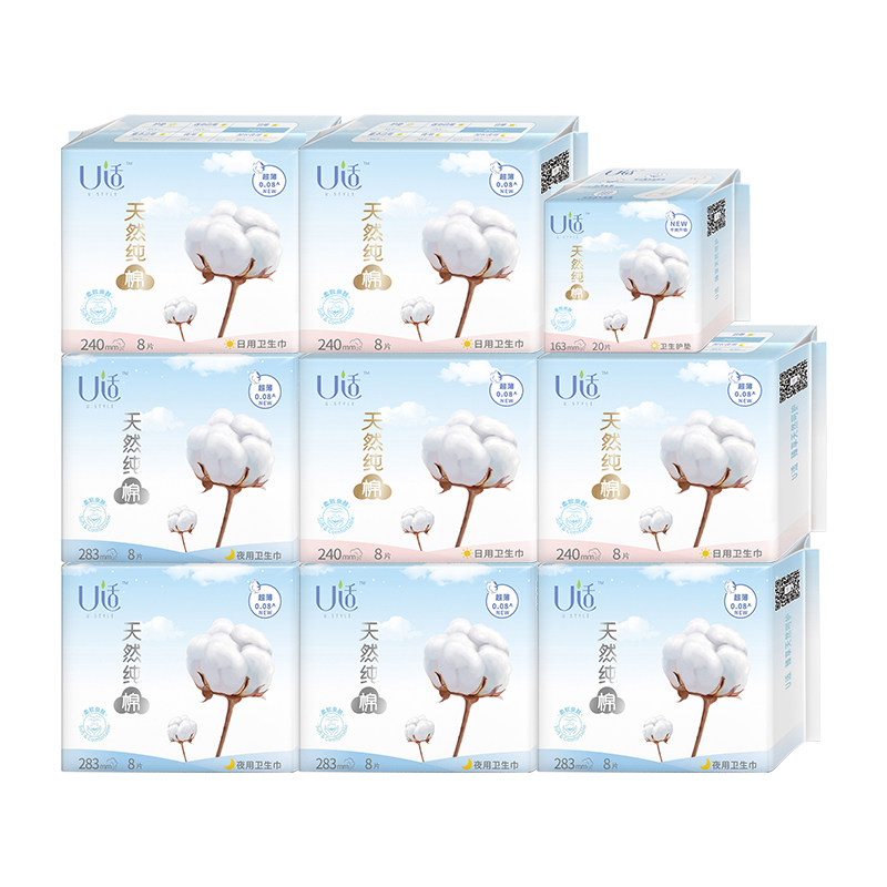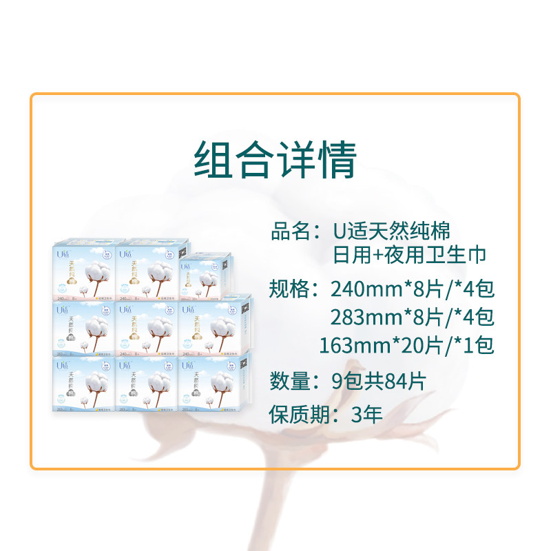 U suitable sanitary cotton silk thin cotton day and night mixed 9 packs of 84 three-dimensional with wing girls aunt towel FCL