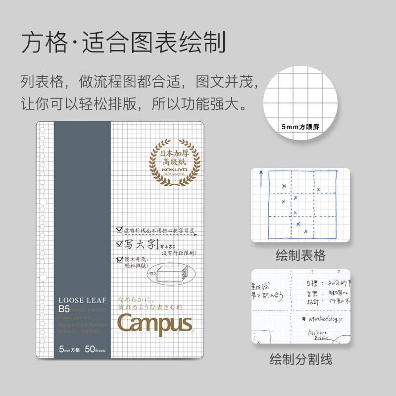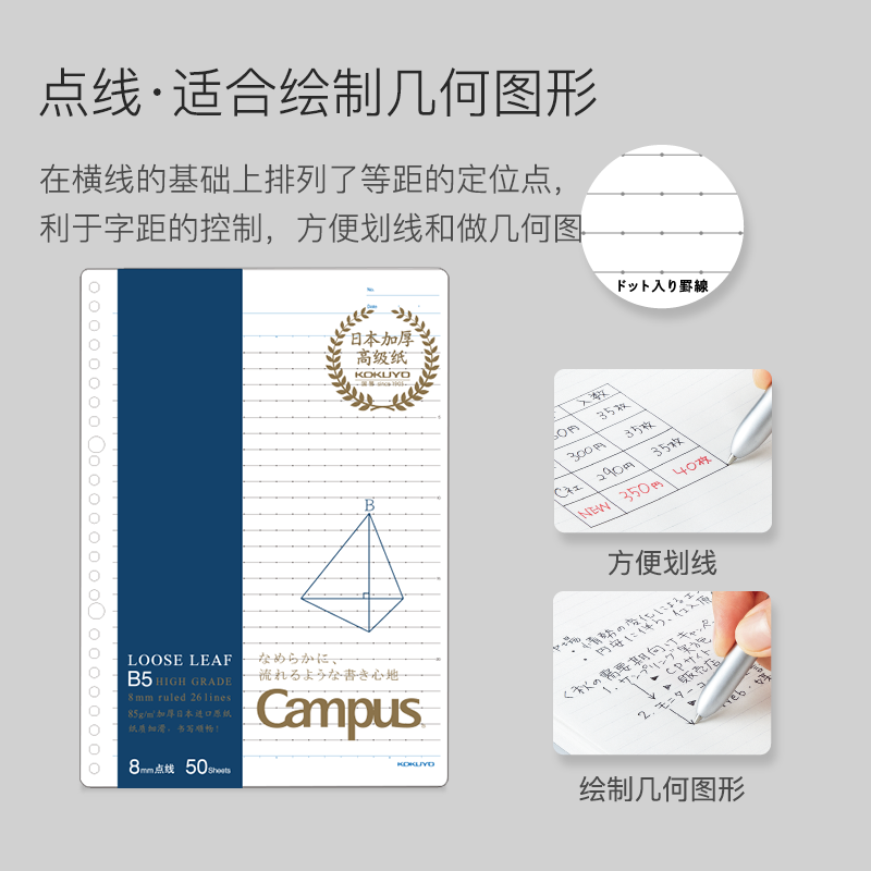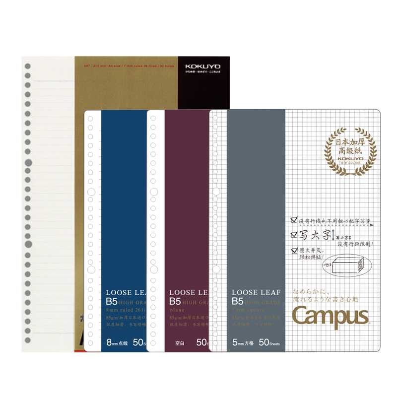 Summer Flag Office) Japan KOKUYO Guoyu) 100G thick CYO paper loose-leaf paper stand-out core) B5A5 horizontal line blank pane point line thickened advanced paper