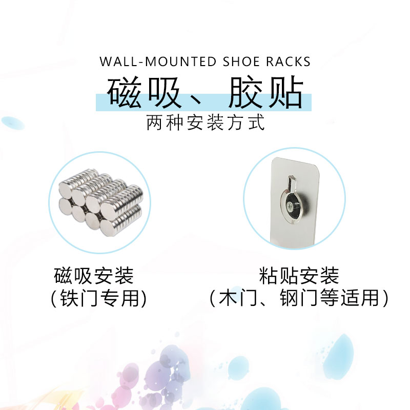 Free installation of magnetic suction door rear shoe rack deodorant double-layer paste wall-mounted door slippers storage layer rack door small rack