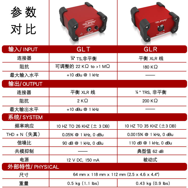 TC electronic Teleport GLT GLR unbalanced signal converter to compensate for wire sound quality
