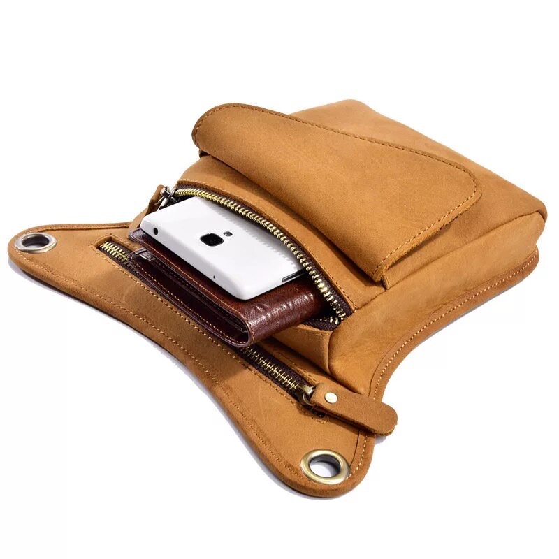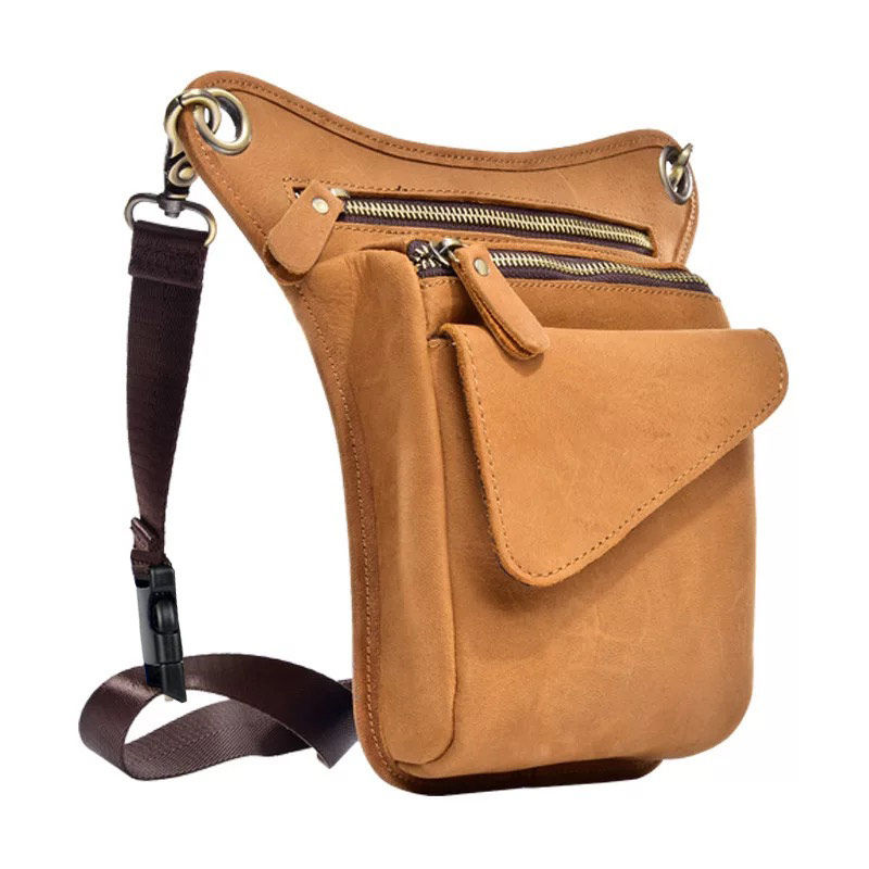 Men's Leather Waist Bag Retro Harley Rider Motorcycle Bag Waist and Leg Bag Multifunctional First Layer Cowhide Riding Crazy Horse Leather