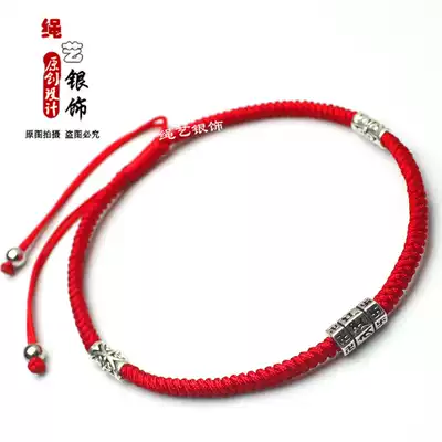 Six-character truth S925 sterling silver men's feet refining original personality hand-woven foot silver foot rope to send boyfriend