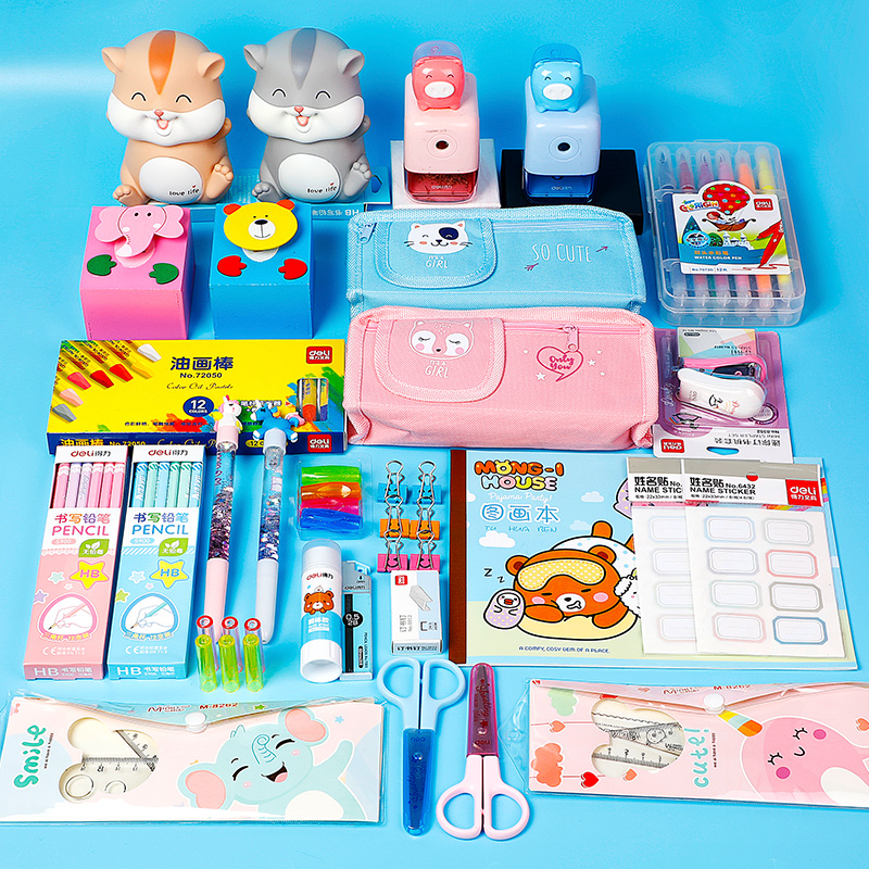 Deli stationery set gift box Gift set for kindergarten primary school students School supplies Girls and children graduation and start of school gift package for first grade Second grade June 1 Children's Day gift for third grade