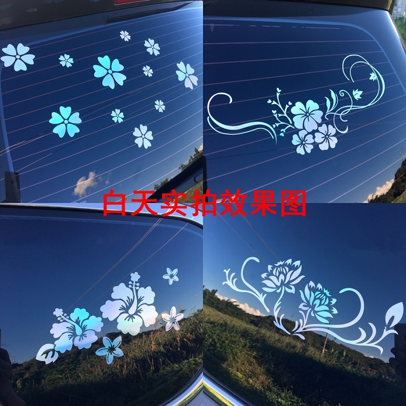 Personality Flowers Car Stickup Personality Creativity Seven Color Reflective Car Stickler Tail stickers Rear Shield Glass Decoration Stickers