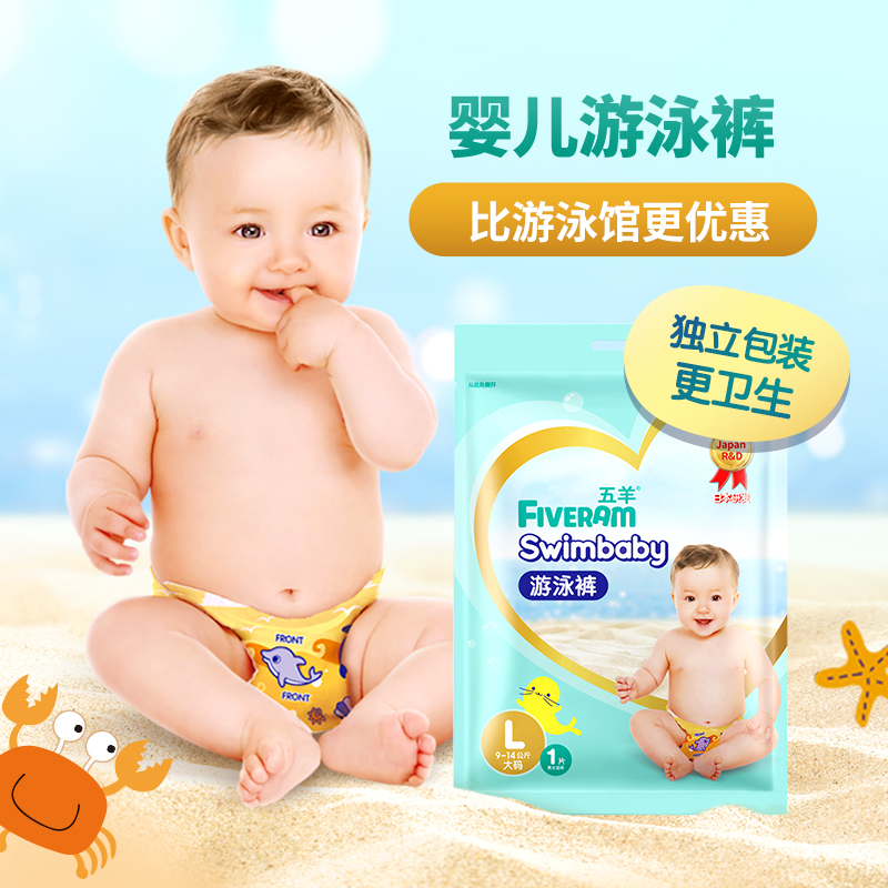 Five sheep baby swimming diapers M L code 3 pieces baby waterproof diapers disposable urine non-wet swimming pants