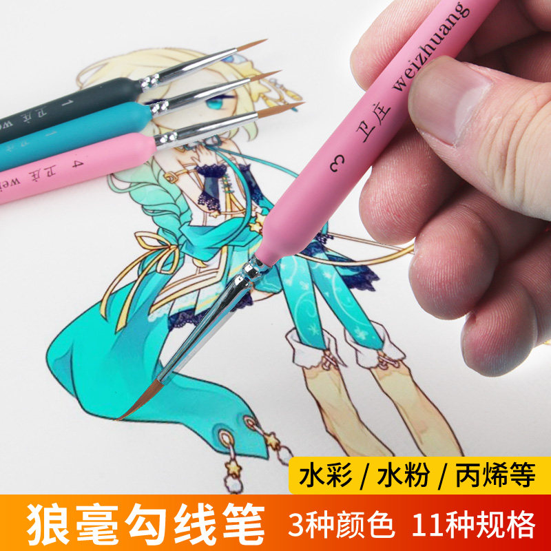 Single Weizhuang wolf brush hook line pen Watercolor face pen Stroke pen Chinese painting Fine brush stroke line pen Stroke pen Oil painting Art work pen Student color gouache hook line pen set