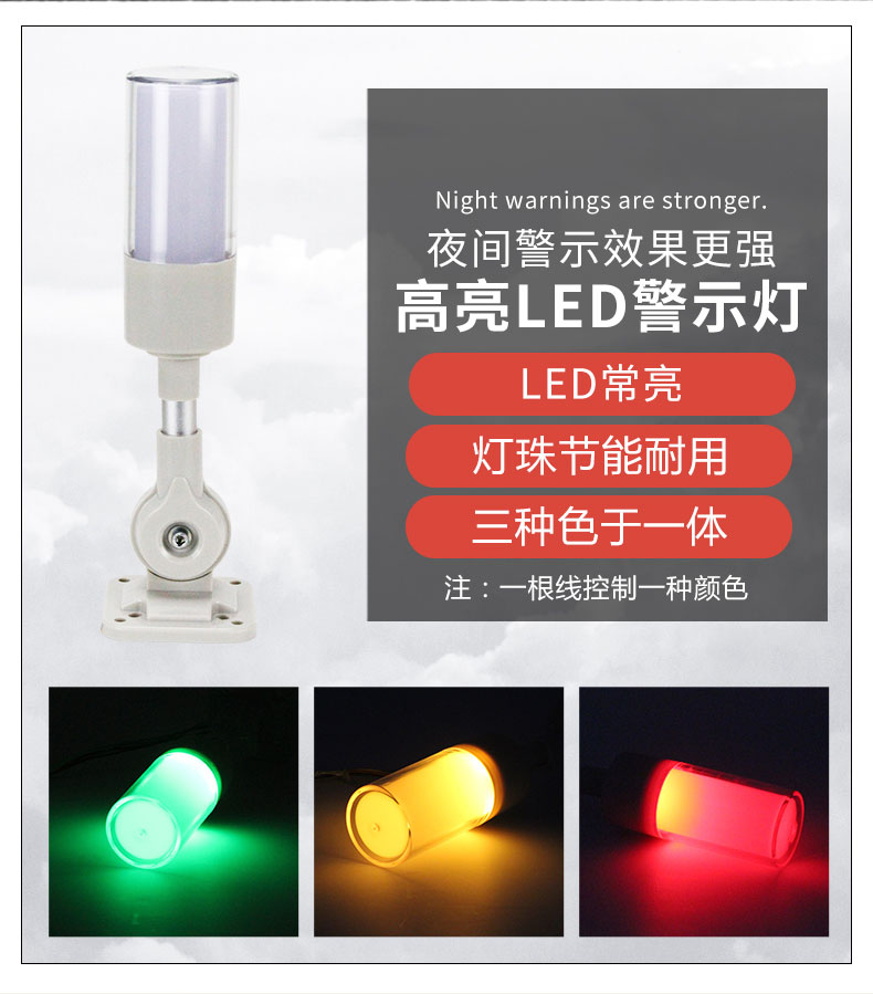 Single-layer warning light integrated three-color LED sound and light siren 24v machine tool signal tower light can fold Changliang Tubang