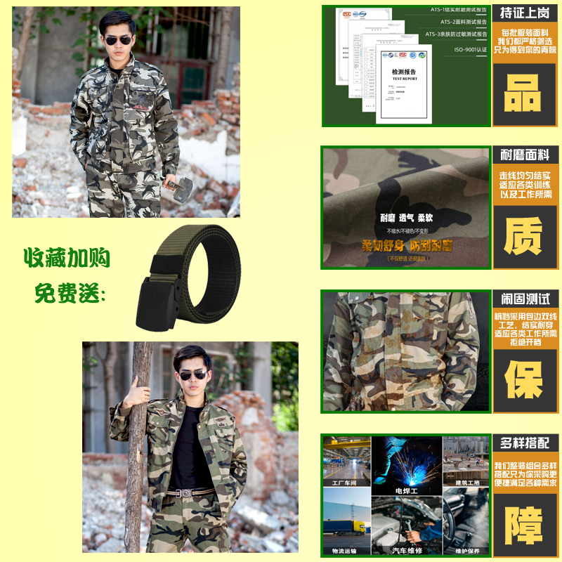 Pure cotton camouflan suit for men's spring and autumn thickened abrasion-resistant camouflan workwear Summer New military camouflak clothing Lawsuit