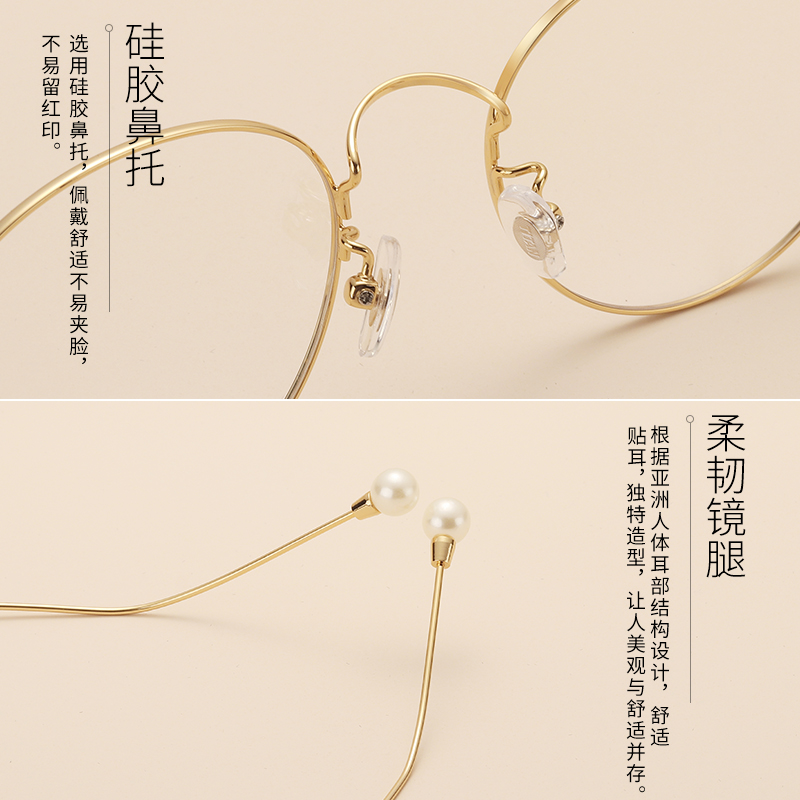 With finished myopia glasses female Korean version of the tide has a degree retro pearl pure titanium eye frame net red glasses - Taobao