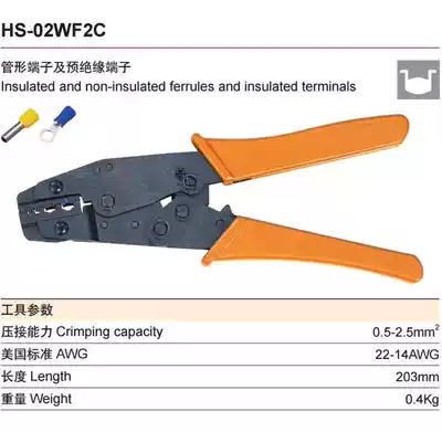 Huasheng tool HS-02WF2C crimping pliers tube type Terminal Pre-insulated terminal crimping pliers 0 5-2 5 square