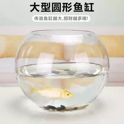 Extra large fish tank glass round creative transparent thick goldfish tank turtle tank living room feng shui Zucai tank 50cm