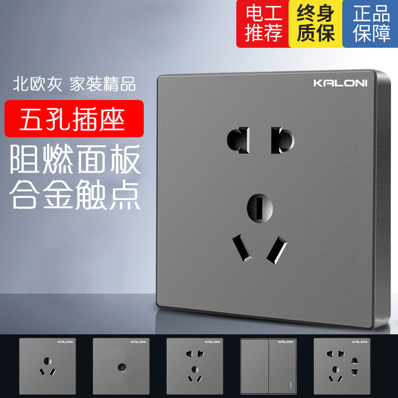 86 type wall gray one-open single-control light switch Household single-joint single-control switch One-position one-open switch panel