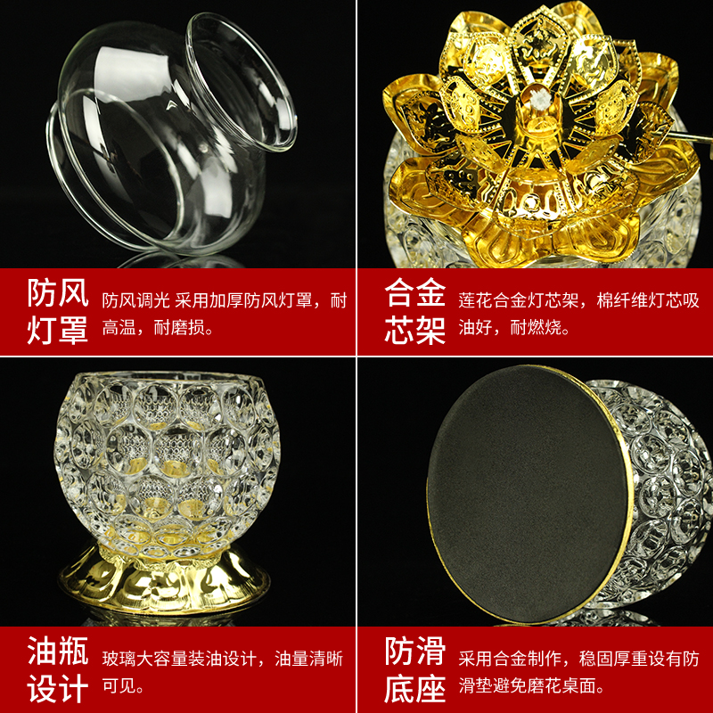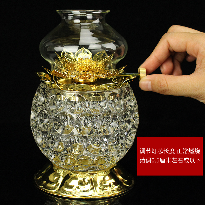 Pleasant Alloy Brilliant Lotus oil lamp liquid ghee smokeless windproof long Ming lamp glazed lotus seat dimmable lamp-Taobao