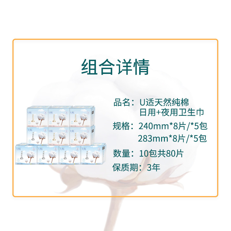 Sanitary Cotton U Suitable natural pure cotton Aunt towel Daily Night with 10 packs mixed whole box batch of 80 women M scarves