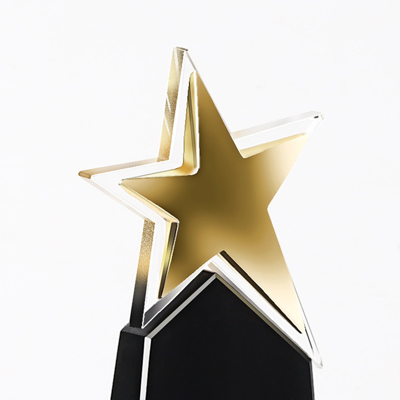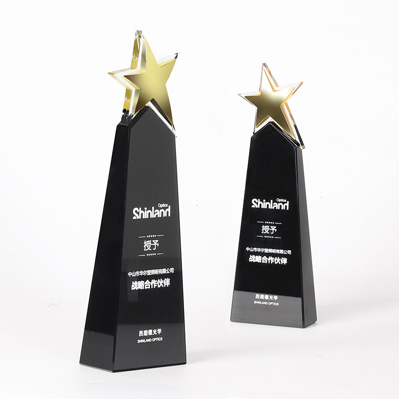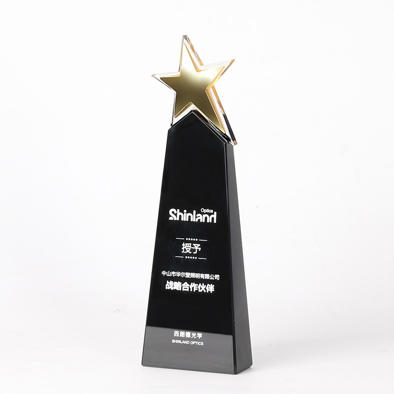 Five-pointed star crystal trophy custom competition champion trophy medal custom gold, silver and copper awards outstanding staff lettering