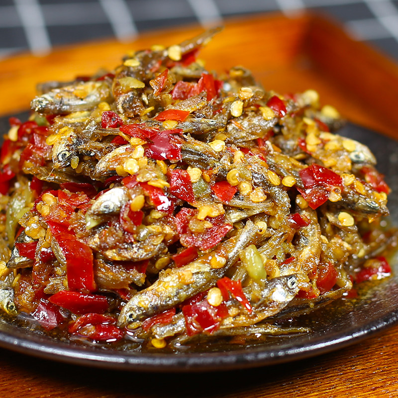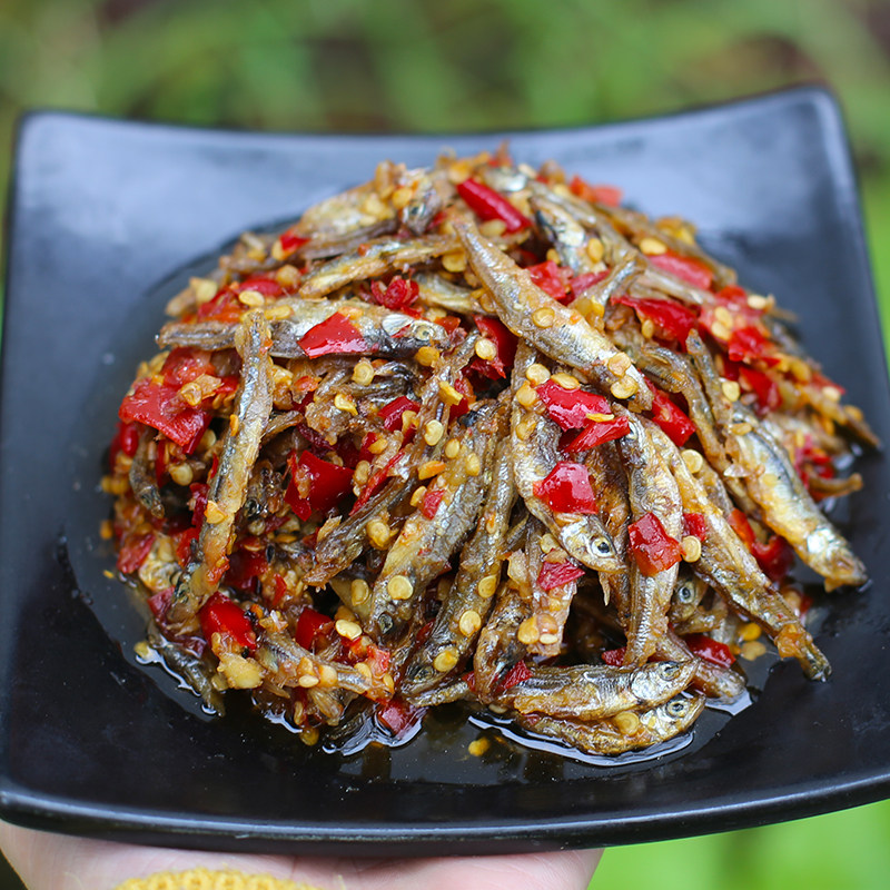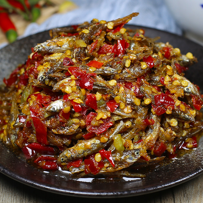 Jiangxi Teproduces small cutting knife with spicy and hot fish dried down the rice dish fire bacon with small fish-chopped peppers with small fish dried chilli sauce