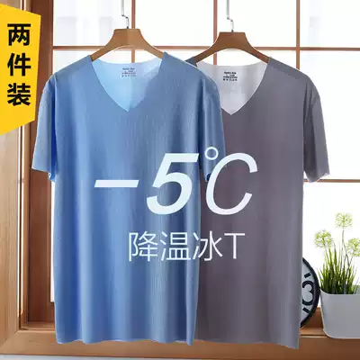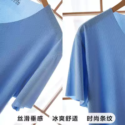 2-piece striped ice silk short-sleeved T-shirt men's quick-drying air-permeable ultra-thin sliding and hanging air-conditioning shirt half-sleeved summer trend