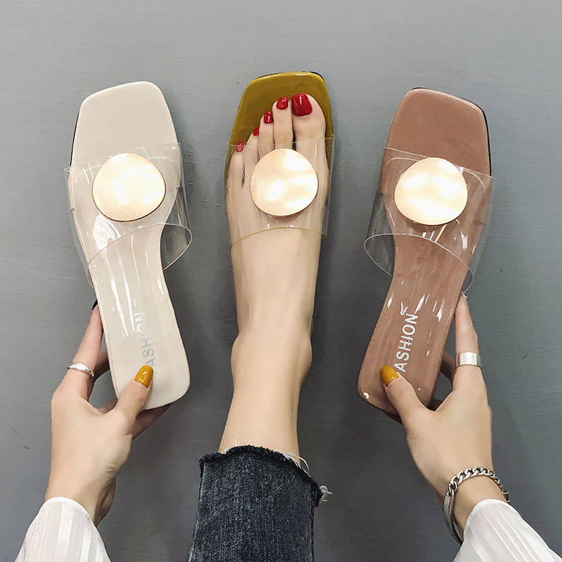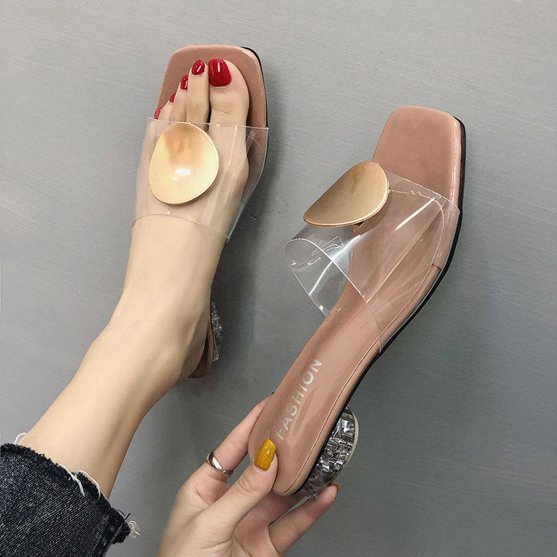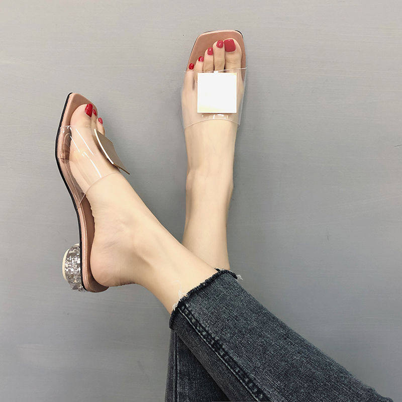 Women's crystal transparent slippers women wear summer thick heel fashion Korean version 2019 new high-heeled beach shoes women