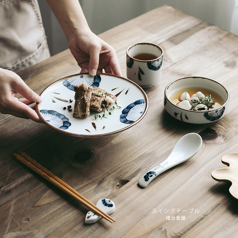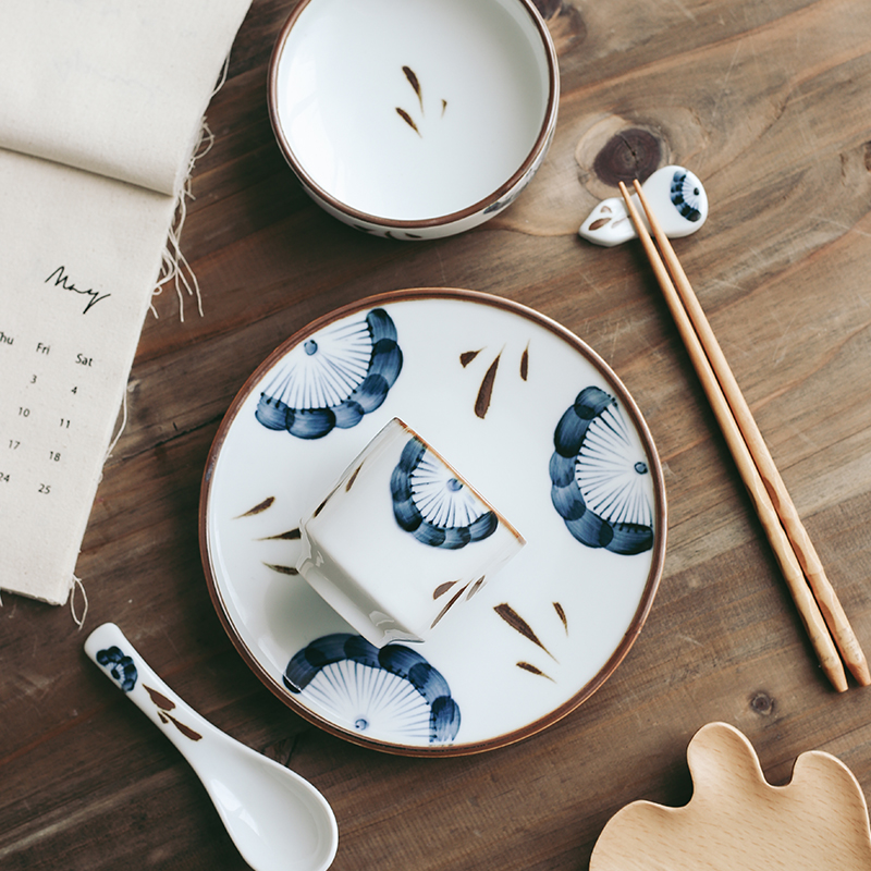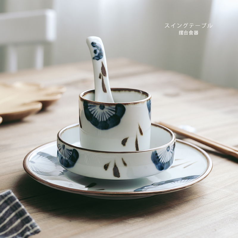 4 5-inch three-leaves low side bowl 7 25-inch three-leaf shallow pan three-leaves cup three-leaf gourd chopstick-spoon hand-painted three-leaf swing table suit (instrumental type) -5 pieces