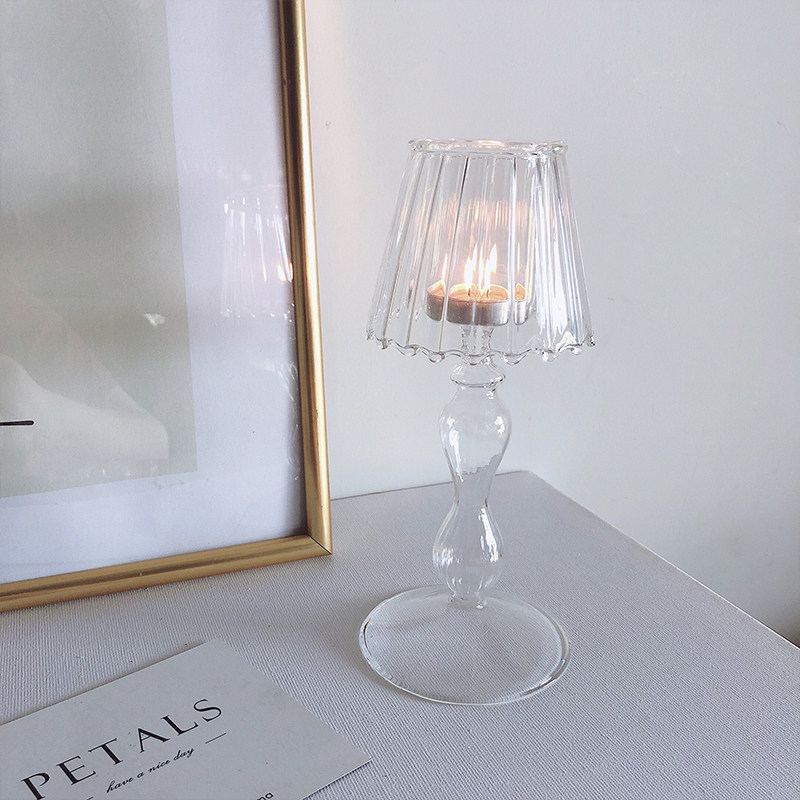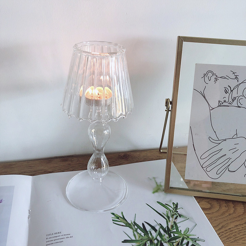 ins Xiaoqing New glass table lamp candle holder net Red folk Cebu Home Decorative Pendulum minimalist retro shooting props