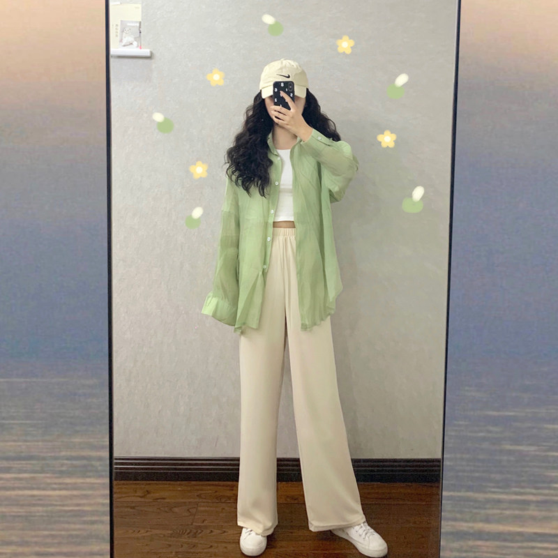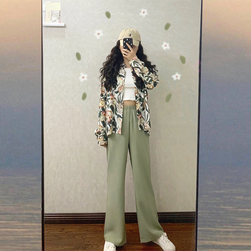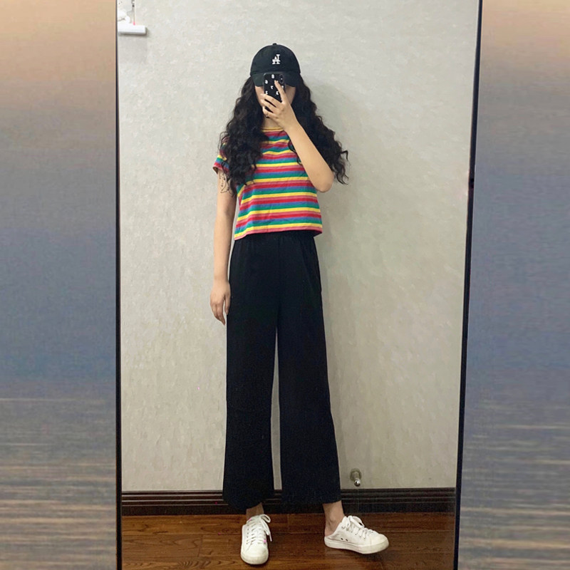 Huiliuliu Nine Ice Filament High Low Fengxing Wide Legs Woman Summer Thin Cold Pants