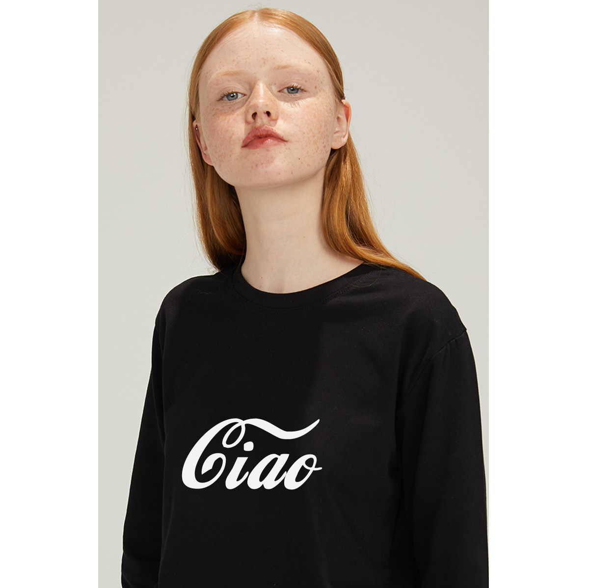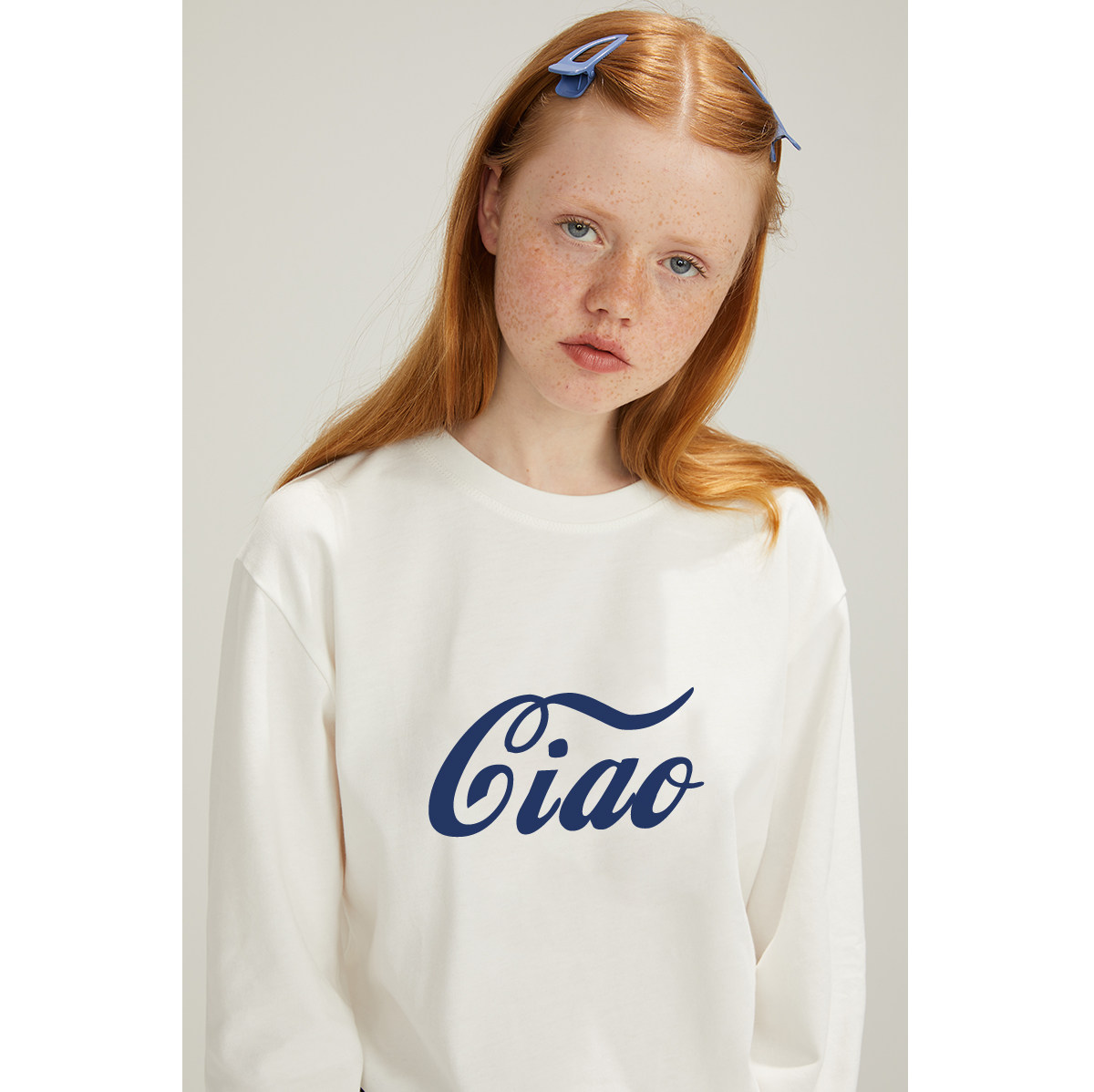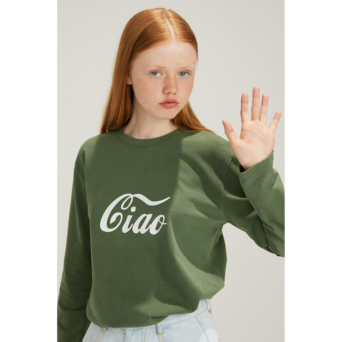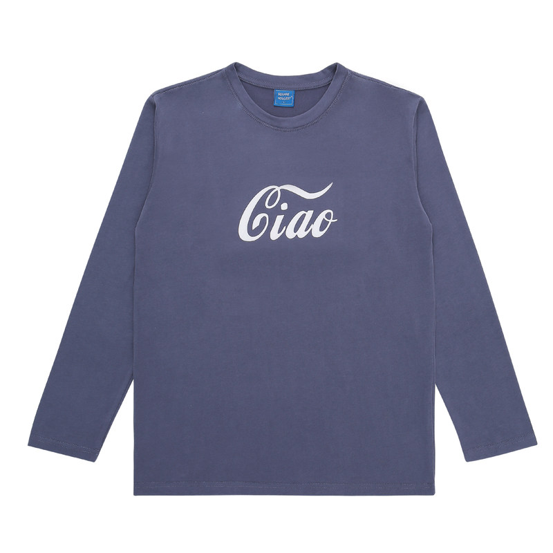 square houlest white letter printed thin sheet thick cotton T student movement round collar loose long sleeve blouses woman