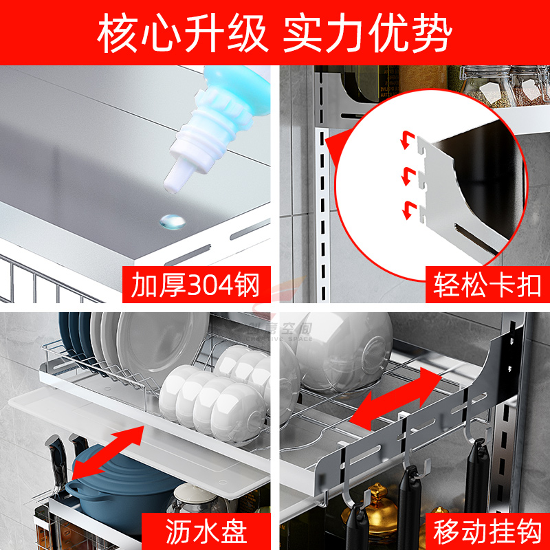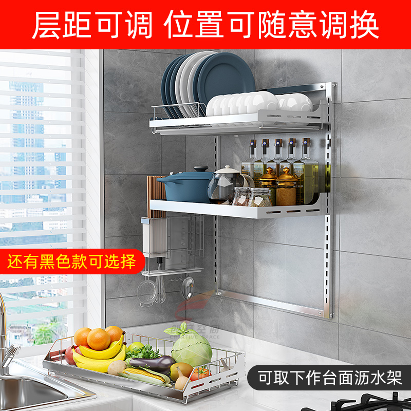 304 stainless steel wall-mounted bowl rack drain rack hole-free kitchen shelf Knives and chopsticks drying dishes storage shelf