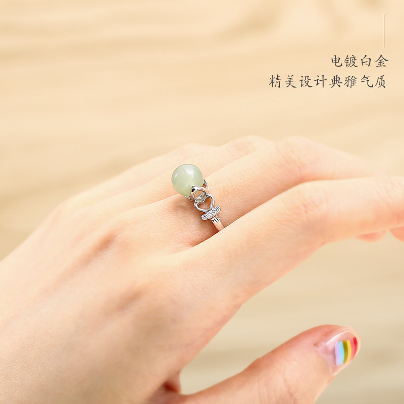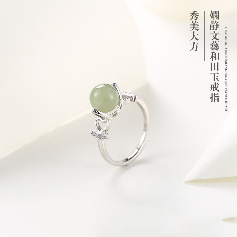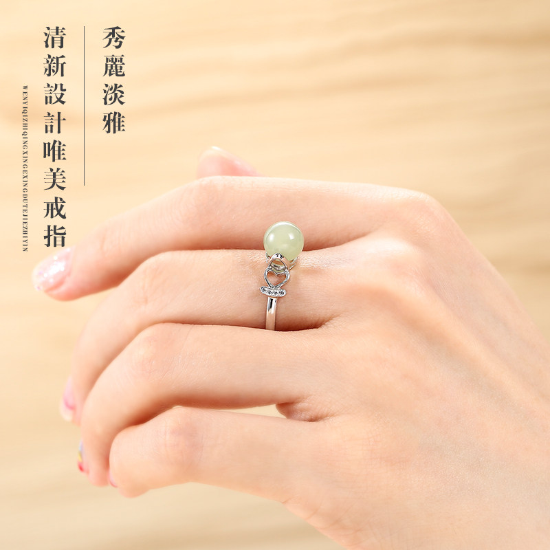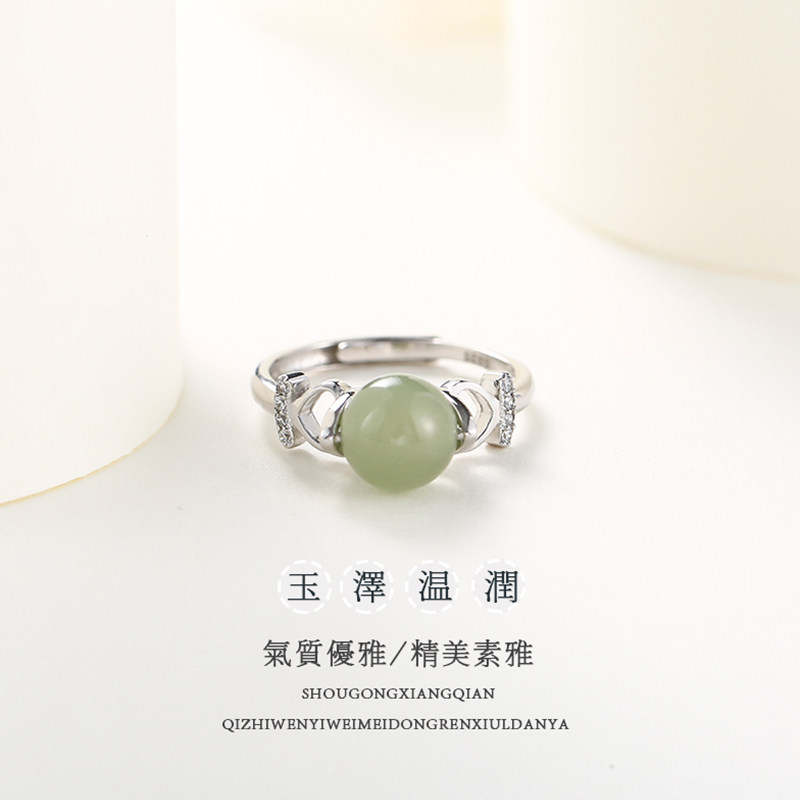S925 pure silver ring female fashion personality index finger ring ornament jade and field jade brief net red knuckle ring
