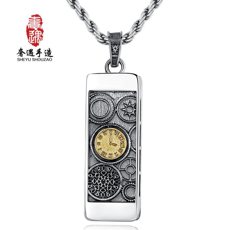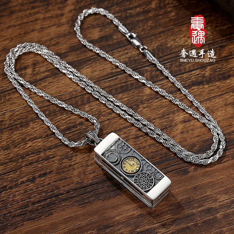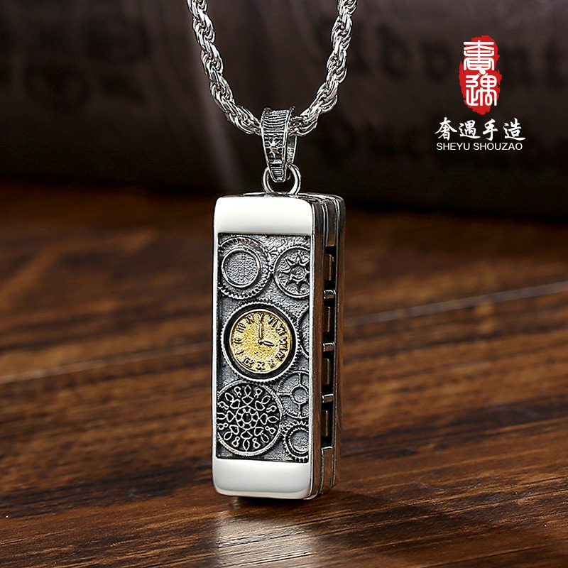 Extravagant S925 pure silver time harmonica pendant male and female can blow original personality Retro necklace pendant damp male silver