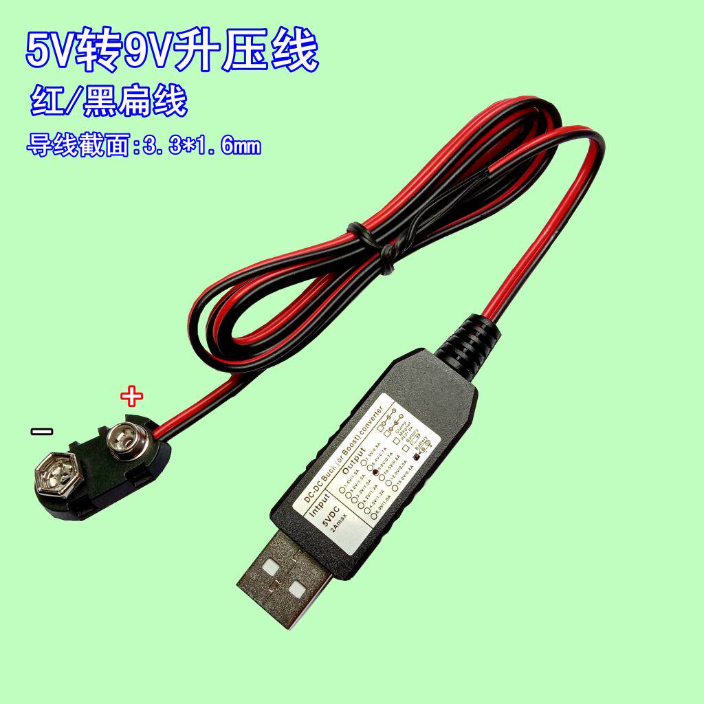 USB5V turns 9V square battery line suitable for handheld temperature measuring instrument smoke monitoring wireless remote control doorbell instrument
