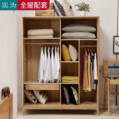 (New product special) full oak wardrobe sliding door full solid wood large wardrobe multifunctional log sliding door wardrobe