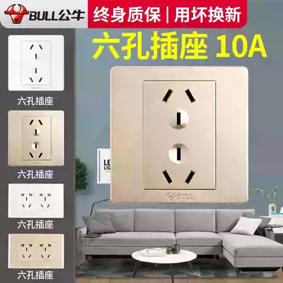 Bull six-hole socket 86 type switch socket 6-plug three-three plug-in concealed wall dislocation socket panel six-hole