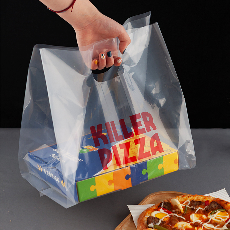 Pizza delivery packaging bag 7 inch 9 inch 10 inch 12 inch pizza food plastic bag tote bag custom logo