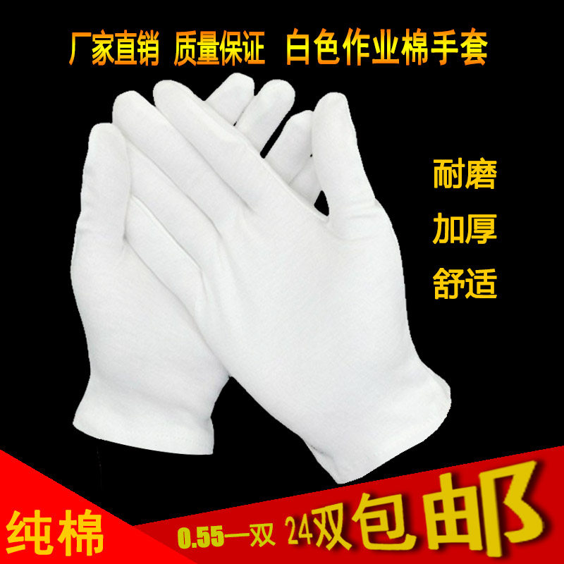 White cotton gloves manners thickening work pure cotton thicking driving non-slippery cotton gloves for labor paste play for work packing