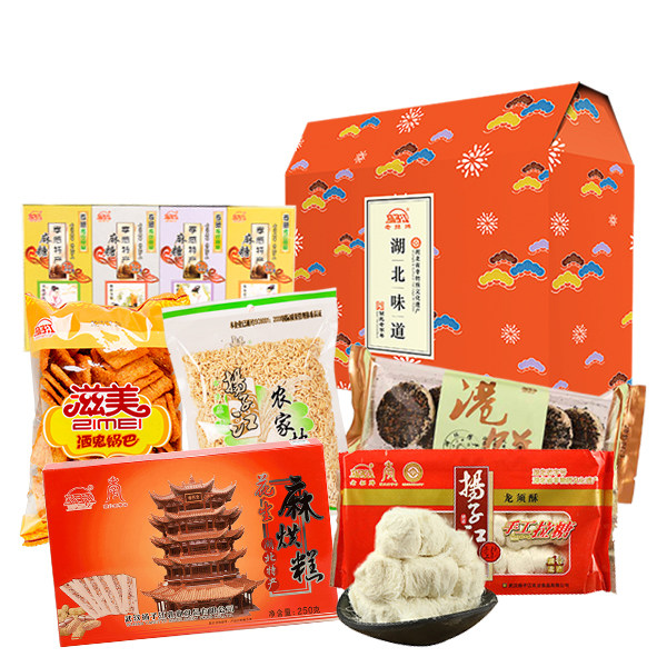 Wuhan's special elder character gift box installed Yangzijiang Hubei Flavor Crisp Candy Harbor Pie of Sesame Cake and Snow Bread Cake and Gift Bags