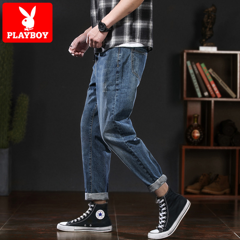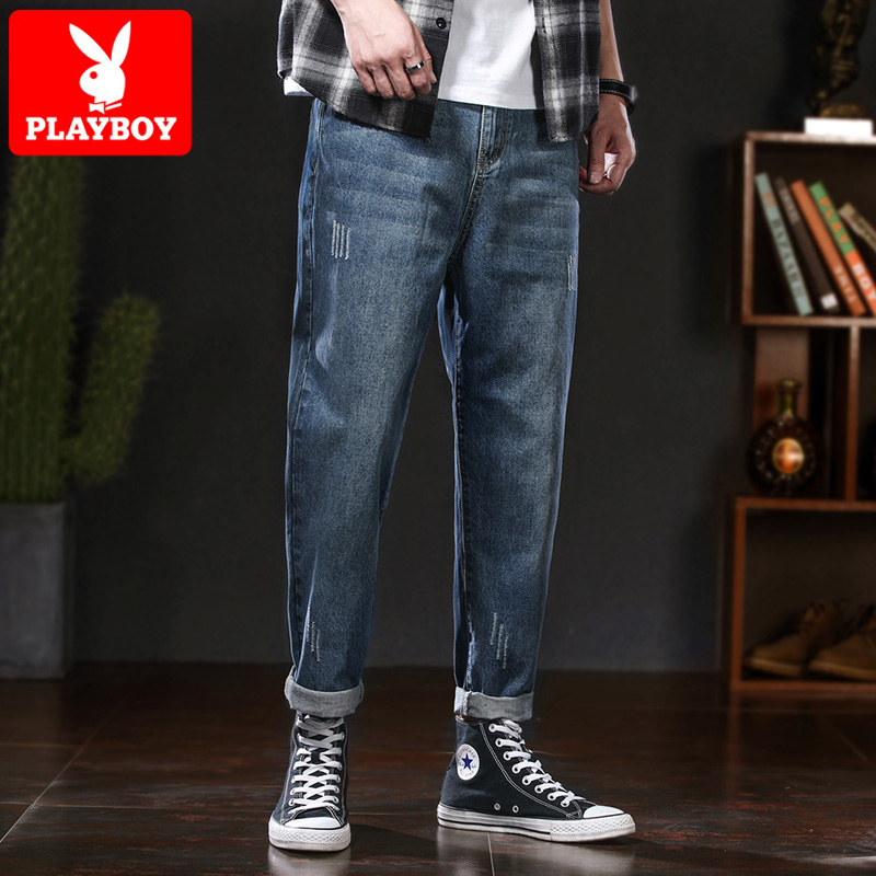 Flower Playboy jeans Men's 2021 Spring and autumn season with a Han version Tide Cards Straight Barrel Casual Little Feet Loose Long Pants