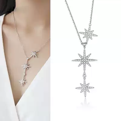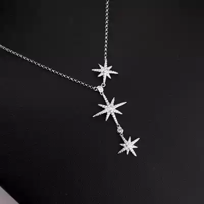 18K platinum double meteor necklace rice character three stars Y sweater refining six stars choker pendant female Net Red