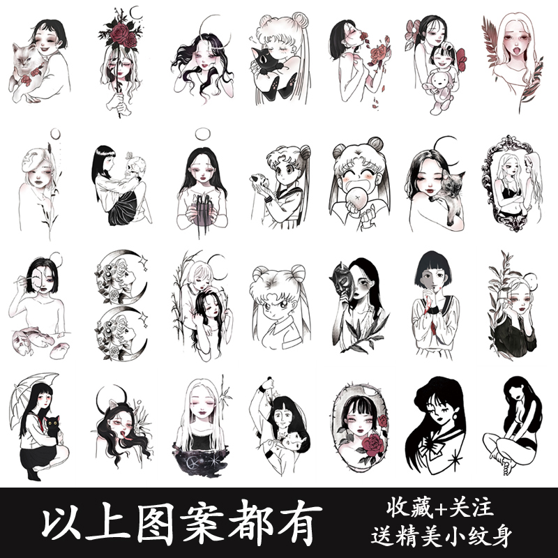 Dark series Sailor Moon tattoo stickers waterproof female long-lasting ins wind Korean Internet celebrity Hyuna not permanent 1 year