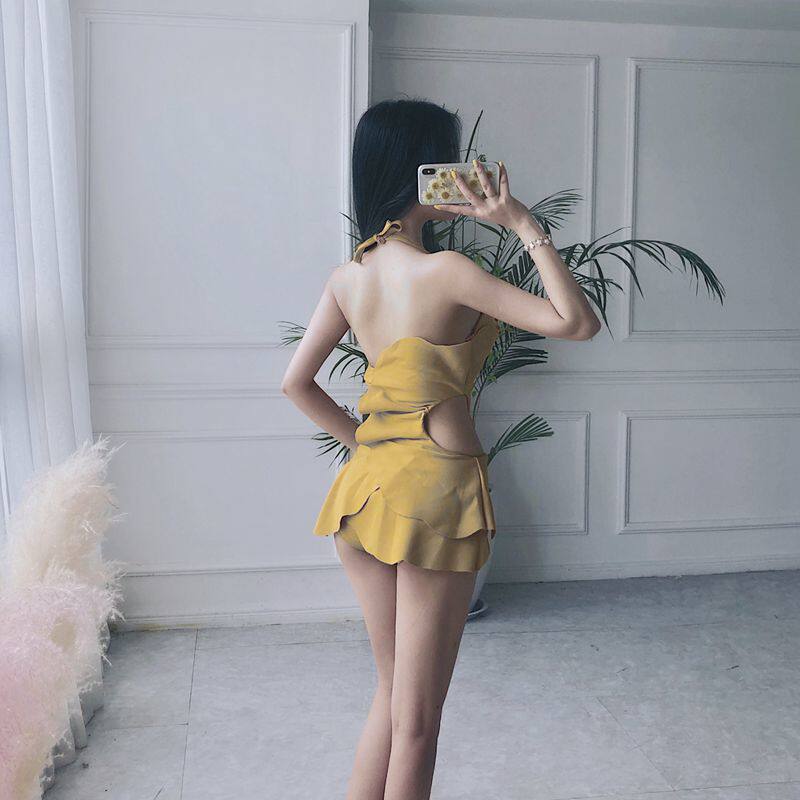 Doodle Han Shang Korea ins Sexy cut-out one-piece swimsuit Women's summer small chest gathered thin belly cover hot spring swimsuit