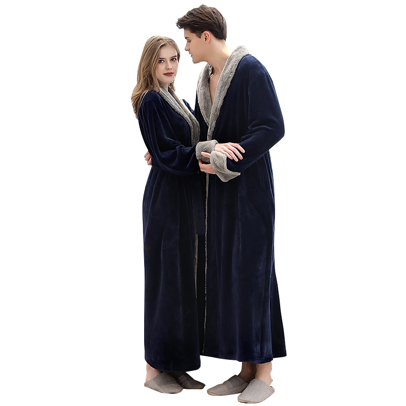 Sleeping robe men's flannel lengthened bathrobe women's home clothes lovers sleeping robes pyjamas pyjamas autumn and winter coral suede bath clothes upgrade