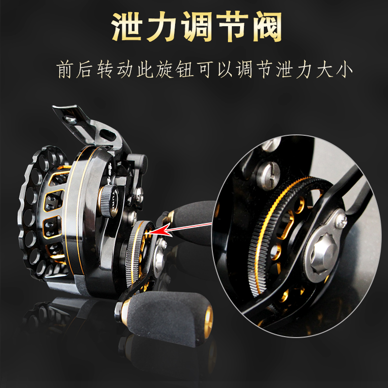 The direction of the handle of the fishing wheel: