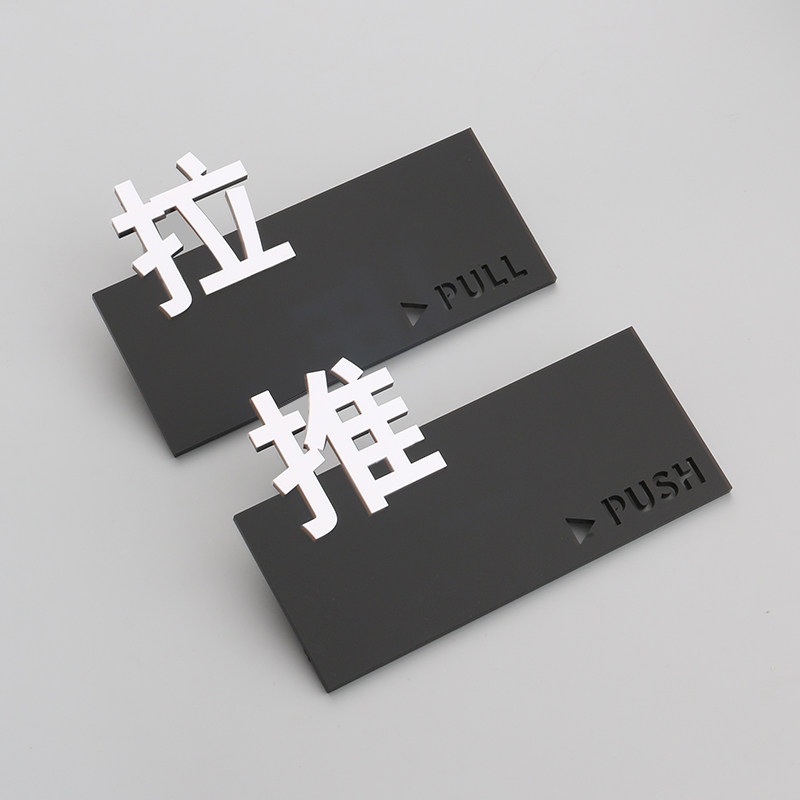 Acrylic personality creative glass sliding door paste push-pull logo sign sign prompt paste type 3d logo sign