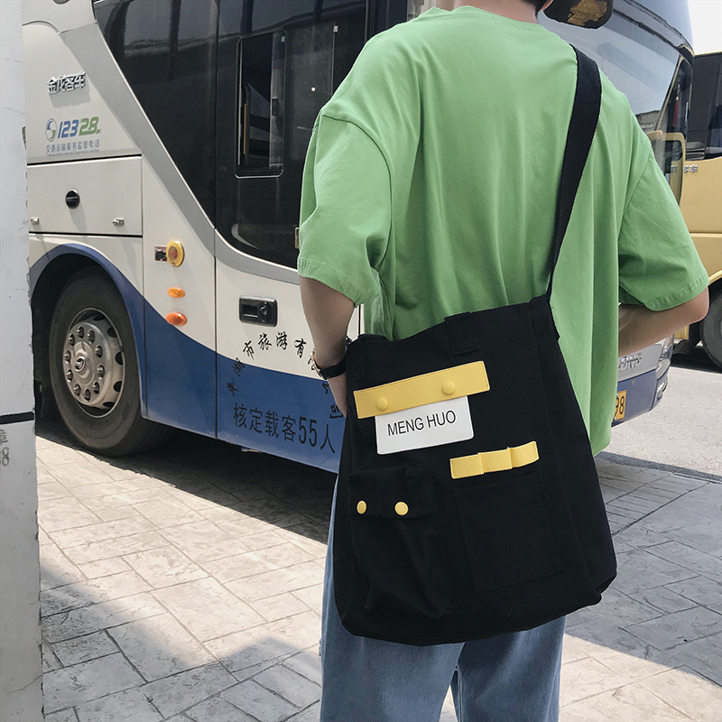 Large Capacity Slanted Cross-scapegoat Casual Slant Scapegoat Canvas Thickened Cloth Bag Trendy Harbor Wind 100 lap single shoulder diagramded satchel