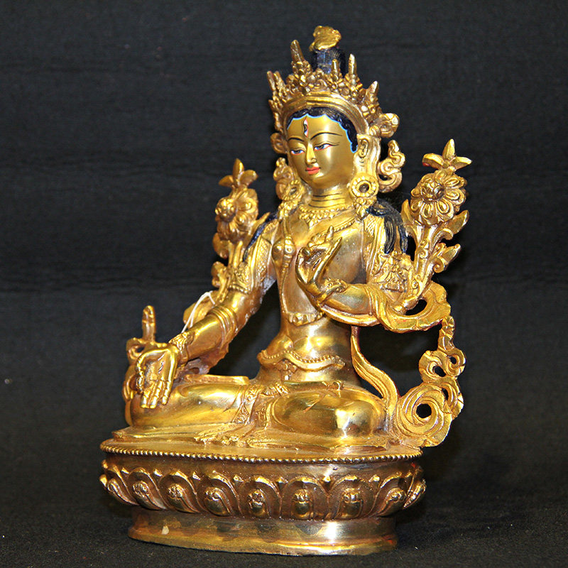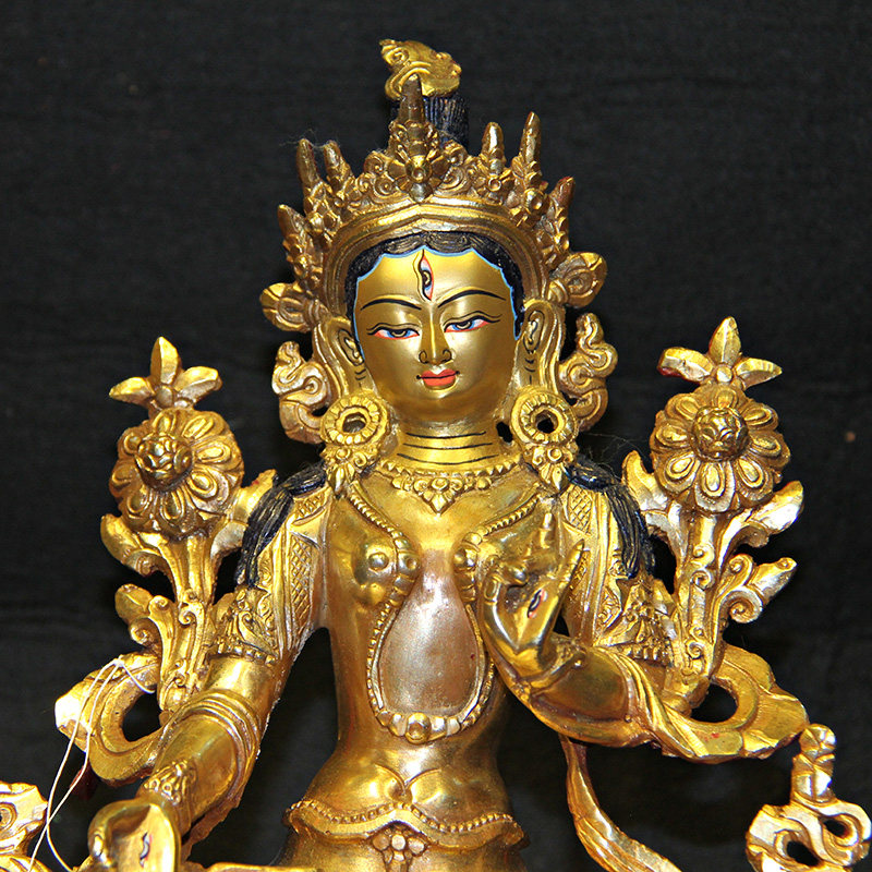 White Tara Buddha statue Nepal handwork pure copper gilt Tibetan Tantra family home worship Buddha statue display 7 inches