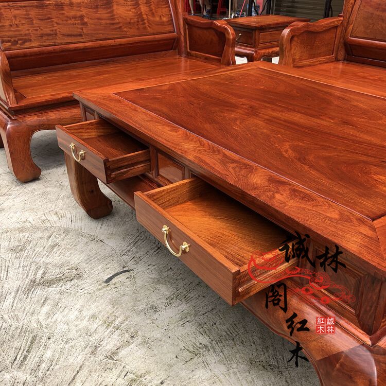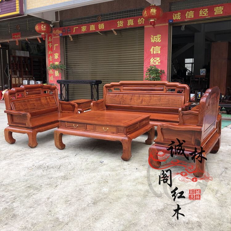 Red wood furniture Myanmar flowers pears wood sofa 6 pieces of solid wood Chinese style living room complete set of big fruit purple sandalwood sofa furniture